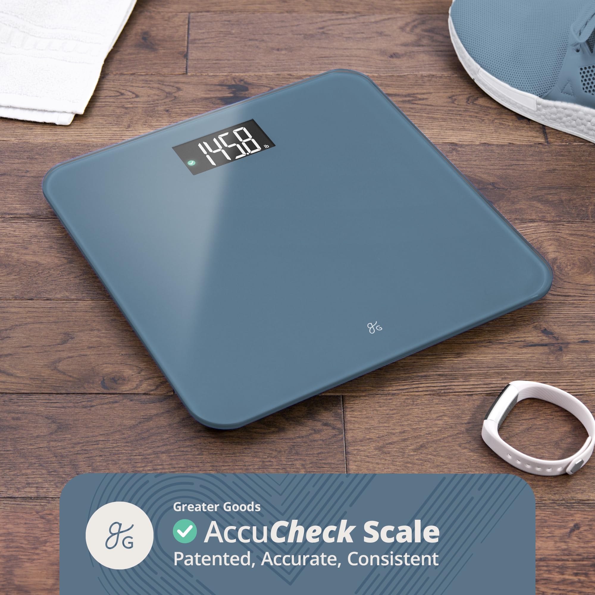 Greater Goods Bathroom Scale with Accucheck and Nutrition Facts Food Scale for Meal Prep. Designed in St. Louis. Blue