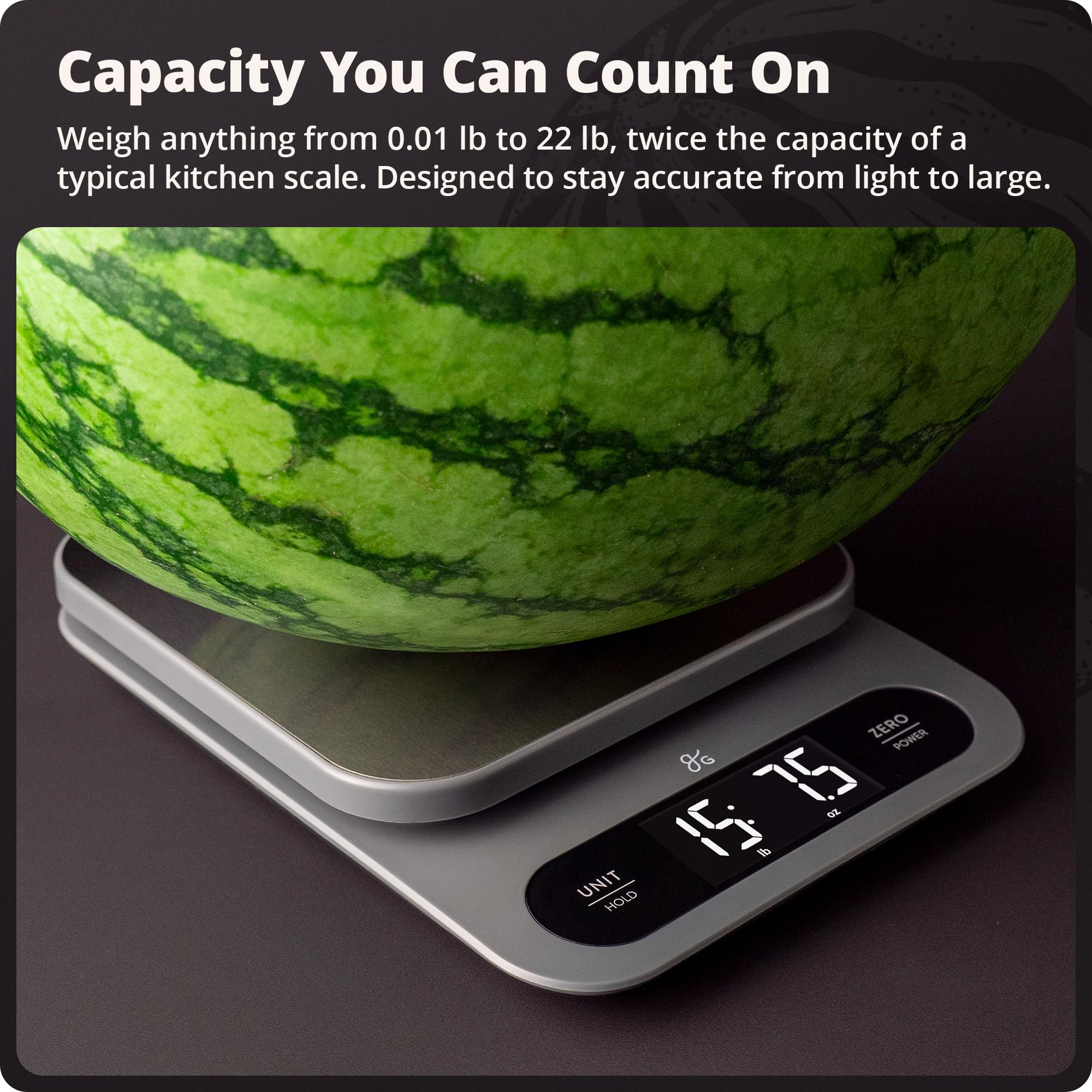 Greater Goods Digital Food Scale for Kitchen & Baking, 10kg/22lb High-Capacity Weight Scale with 1g Precision, Stainless Steel Platform, Hi-Def LCD, Ideal for Bread, Sourdough & Bulk Cooking
