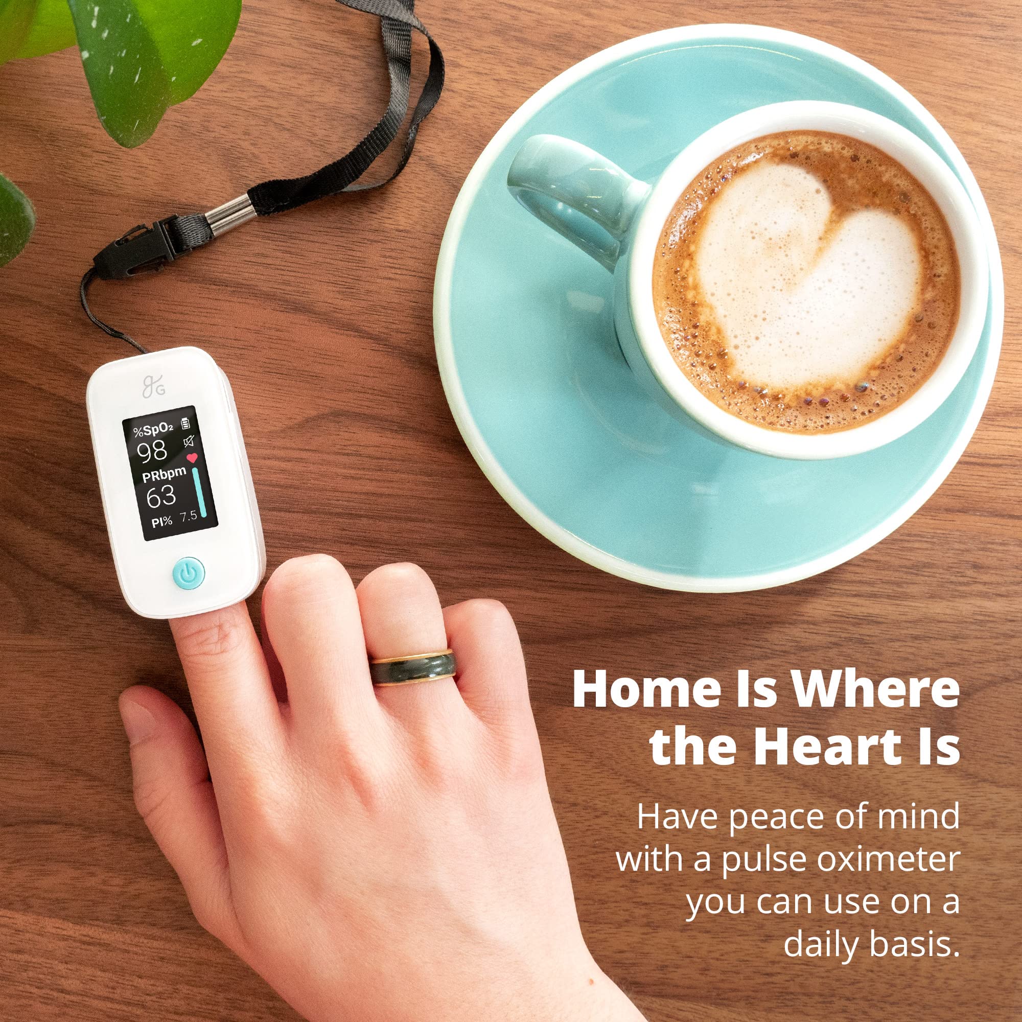 Greater Goods Finger Pulse Oximeter, Blood Oxygen Meter, Measures SpO2, Heart Rate, and PI, Includes Batteries & Lanyard